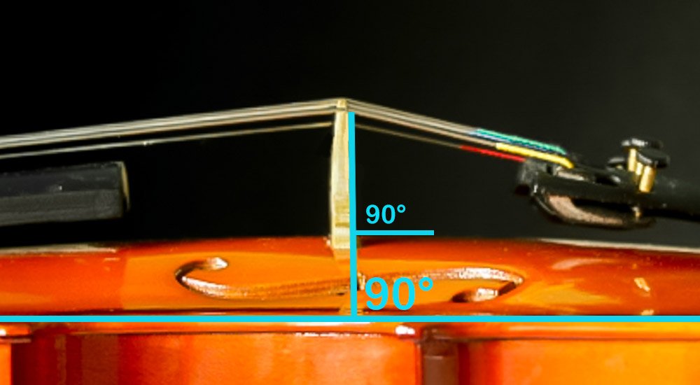 O seu cavalete precisa ficar posicionado de modo a estabelecer um ângulo de 90° (ângulo reto) com o tampo de seu violino.