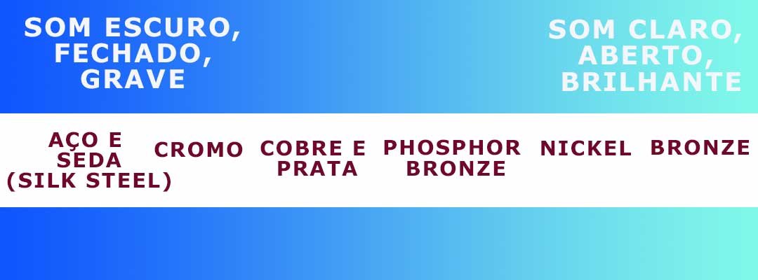 Abaixo, apresentamos uma escala de brilho conforme os tipos de materiais empregados no revestimentos das cordas de aço para violão.