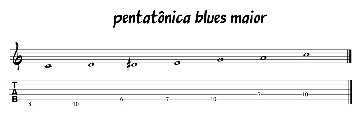 Assim, a escala pentatônica Blues Menor será construída a partir da escala pentatônica menor acrescida de uma quarta aumentada. Por exemplo, em dó menor, as notas seriam: