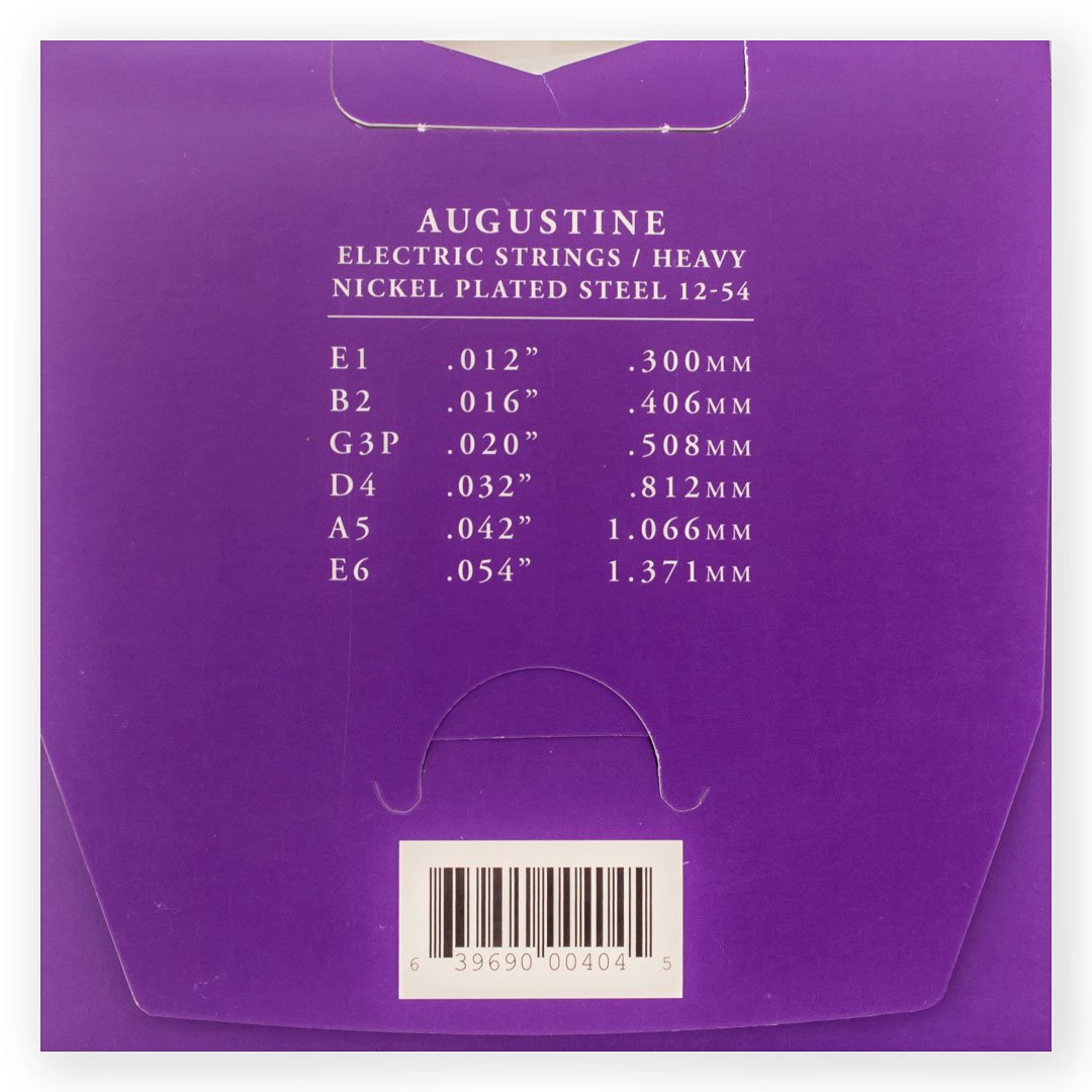 Conteúdo da embalagem: 1 (um) jogo completo de 6 (seis) cordas para guitarra elétrica, Augustine Spectra Heavy 012″ (.012″-.054″)