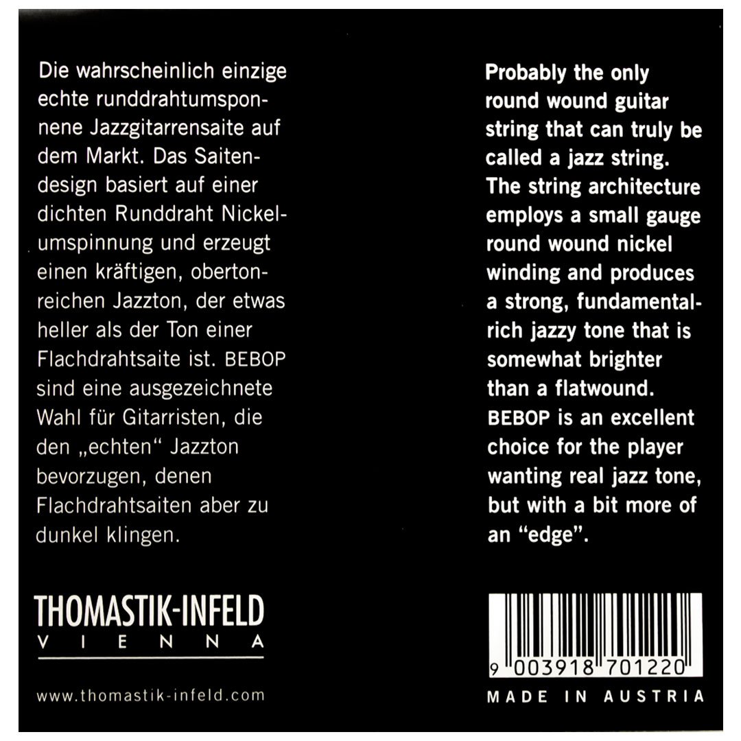 Aos amantes do Jazz, a corda Thomastik-Infeld Jazz Bebop é provavelmente a única corda round que pode ser considerada como uma verdadeira corda de jazz guitar. Um pouco mais de brilho a quem procura repertório do Jazz de vanguarda.